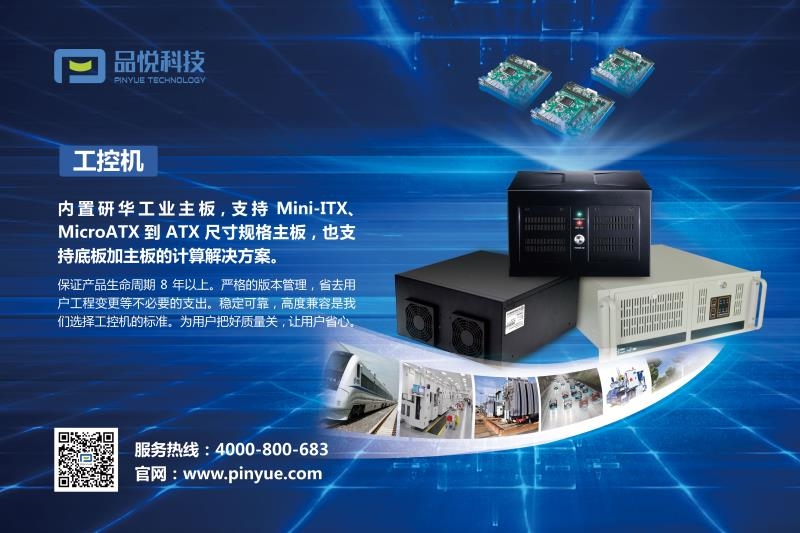 厦门品悦科技有限公司隆重展出三大类自有产品。有风扇工控机,嵌入式工控机,工业平板电脑。有风扇工控机,我们内嵌研华工业主板,保障了整机的稳定性。严格的组装流程,完善的拷机和整机测试,是高品质的前提。品悦科技帮助用户用较低的价格购买到高品质的产品。嵌入式工控机,依据市场的需求,我们推出了3款产品。很好的满足机器视觉用户对稳定性和性价比的要求。日新月异的物联网也带来了对边缘计算和网关的需求,我们也有对应的产品满足。工业平板电脑,我们推出4种规格,分别有12, 15, 17和21.5英寸。电容屏和电阻屏等多种触摸形式,适应不同场景的工业应用。提供嵌入式,悬臂式和壁挂式等多种安装形式。是操作台,产线可视化等应用的首选
